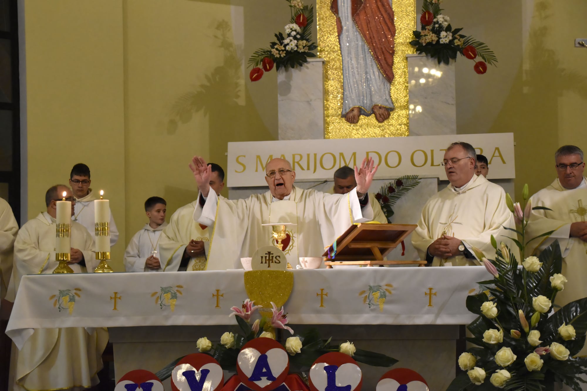 Na svečanom euharistijskom slavlju koje je predvodio mons. Vražić, u koncelebraciji su prisustvovali uz župnika vlč. Kristijana Gatarića, svećenici karlovačkog dekanata na čelu sa dekanom mons. Antunom Senteom. Kako je to lijepo rekao vlč. Kristijan prilikom zahvale: „Izgleda da se cijeli Karlovac slio u našu crkvu Presvetoga Srca Isusova“.