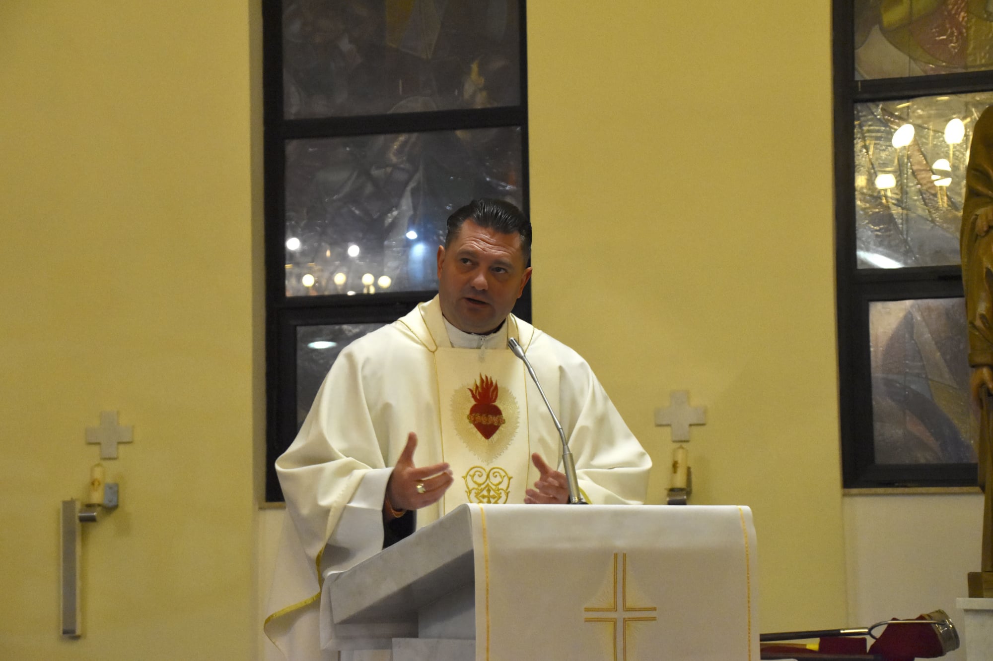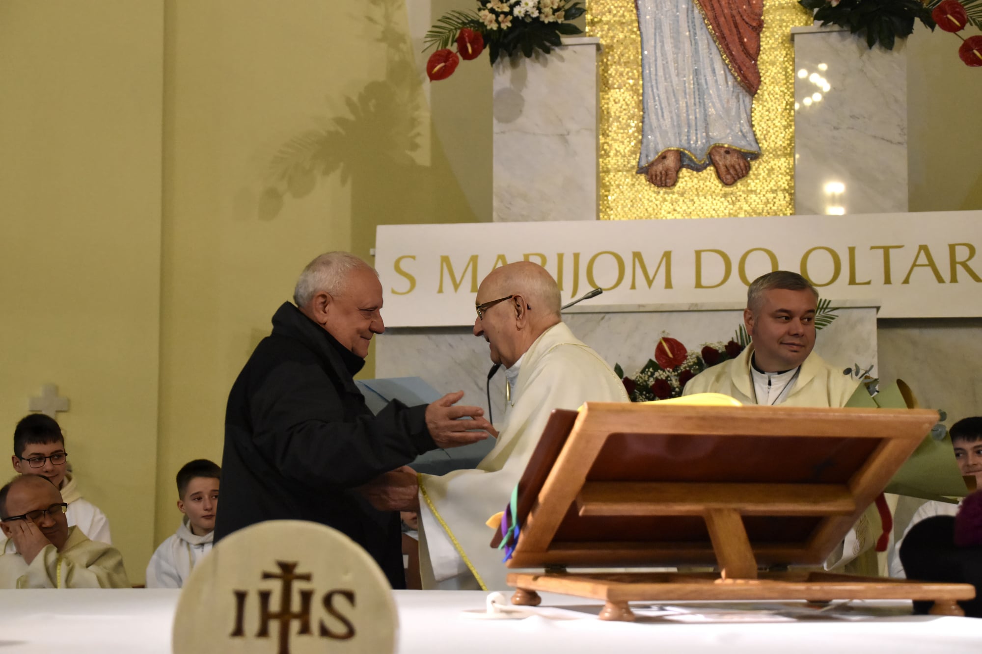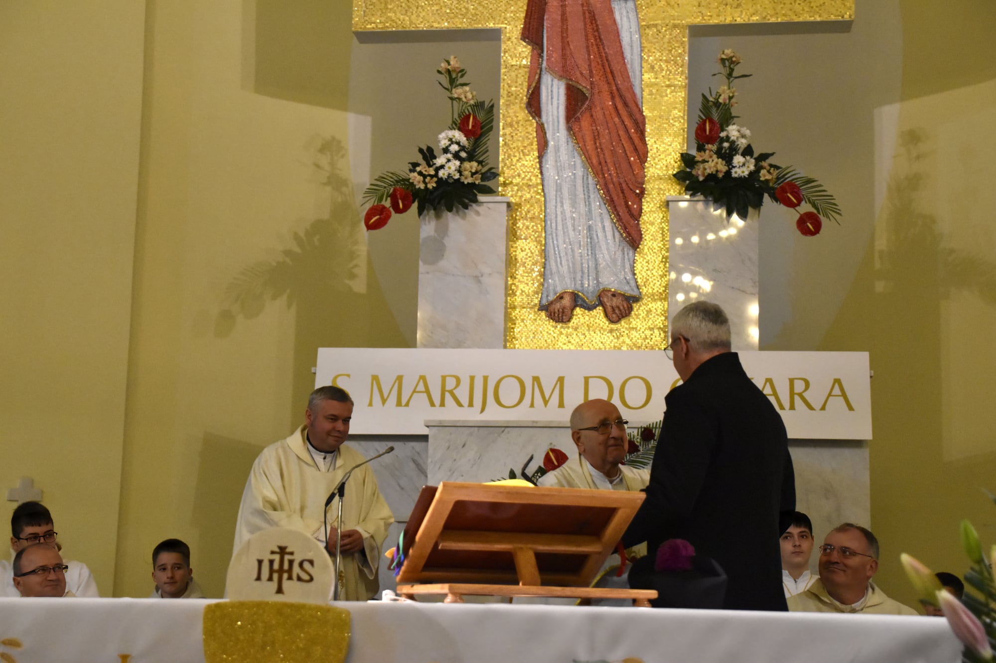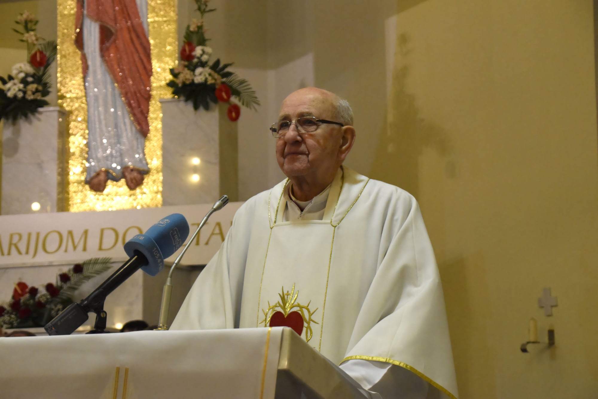 Potom je riječi zahvale uputio vlč. Gatarić: „Nakon godina službovanja na brežuljku Švarča, kao hrabri časnik u borbi za Kraljevstvo Božje u karlovačkoj sredini, uz lik MB Karmelske, Božja providnost vas je dovela da služite dragom Bogu uz najtoplije žarište pobožnosti u župu Presvetoga Srca Isusova…. i u ovoj župi ostavili ste poseban trag i dojam. Svojom otvorenošću, povezanošću i toplinom oplemenili ste život ove župe. Jer je vaša pomoć tijekom zadnjeg desetljeća bila od neprocjenjive vrijednosti. Hvala Bogu što vam je za to dao snage, strpljenja, volje i radosti u stavu prihvaćanja i razumijevanja prema svima i svemu…Dragi mons. Ferdo, danas se opraštamo od vas u znak duboke zahvalnosti…neka vam Gospodin i dalje daje snagu, energiju i poticaj da radite na Njegovu slavu u novoj sredini.“