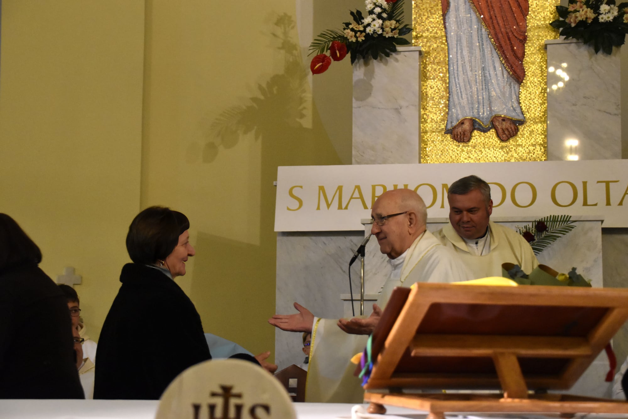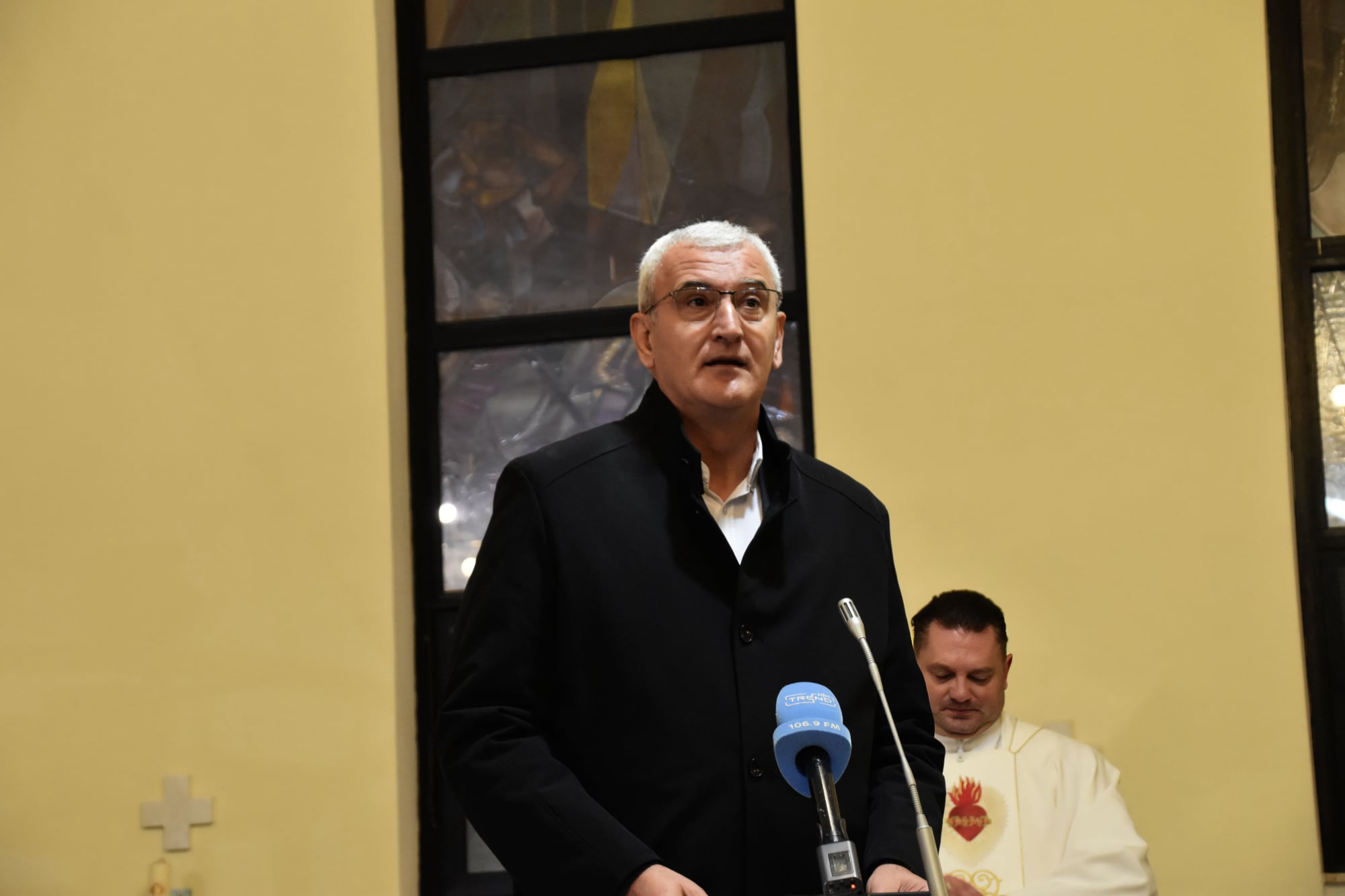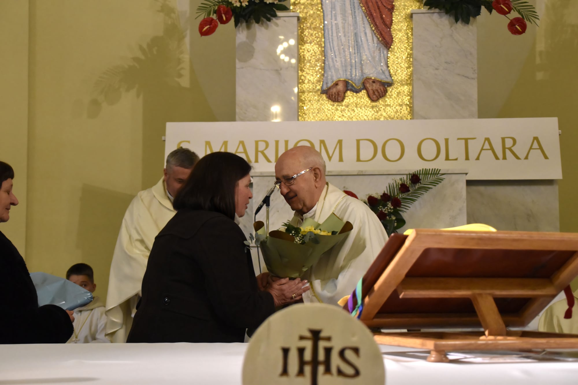 U ime pastoralnog i ekonomskog vijeća te svih vjernika, riječi zahvale uputila je gđa. Branka Bakić citirajući na početku sv. Pavla: „Dobar sam boj bio, trku završio, vjeru sačuvao. Stoga, pripravljen mi je vijenac pravednosti kojim će mi u onaj Dan uzvratiti Gospodin, pravedan sudac; ne samo meni nego i svima koji s ljubavlju čekaju njegov pojavak.“ – 2Tim 4,7-9 Podsjetila nas je gđa. Branka na vremena kada je Crkva bila proganjana i gurana u kut, vremena u kojima je mons. Vražić uistinu bojevao veliki boj. Ne samo da je uspio sačuvati vjeru, nego je svojim riječima i dijelima sačuvao vjeru drugih. „Hvala vam što ste nas pratili u našim životima, dijelili naše radosne trenutke kod krštenja i vjenčanja, pružali utjehu u trenucima tuge, krijepili nas u bolesti, ispraćali pri prelasku u vječnost.“, kazala je gđa Branka, te nastavila: “Služili ste Bogu i narodu zdušno i bez zadrške, bez kolebanja ili dvojbi… Bog, domovina Hrvatska i čovjek za vas su najveće vrijednosti koje se nikada niste stidjeli priznavati i svim srcem za njih ste se borili. Ne želimo danas biti tužni, jer znamo da Bog upravlja našim životima i da smo pozvani radosno i s pouzdanjem prihvaćati od njega namijenjene nam putove, ali moramo reći da ćete nam jako nedostajati.“