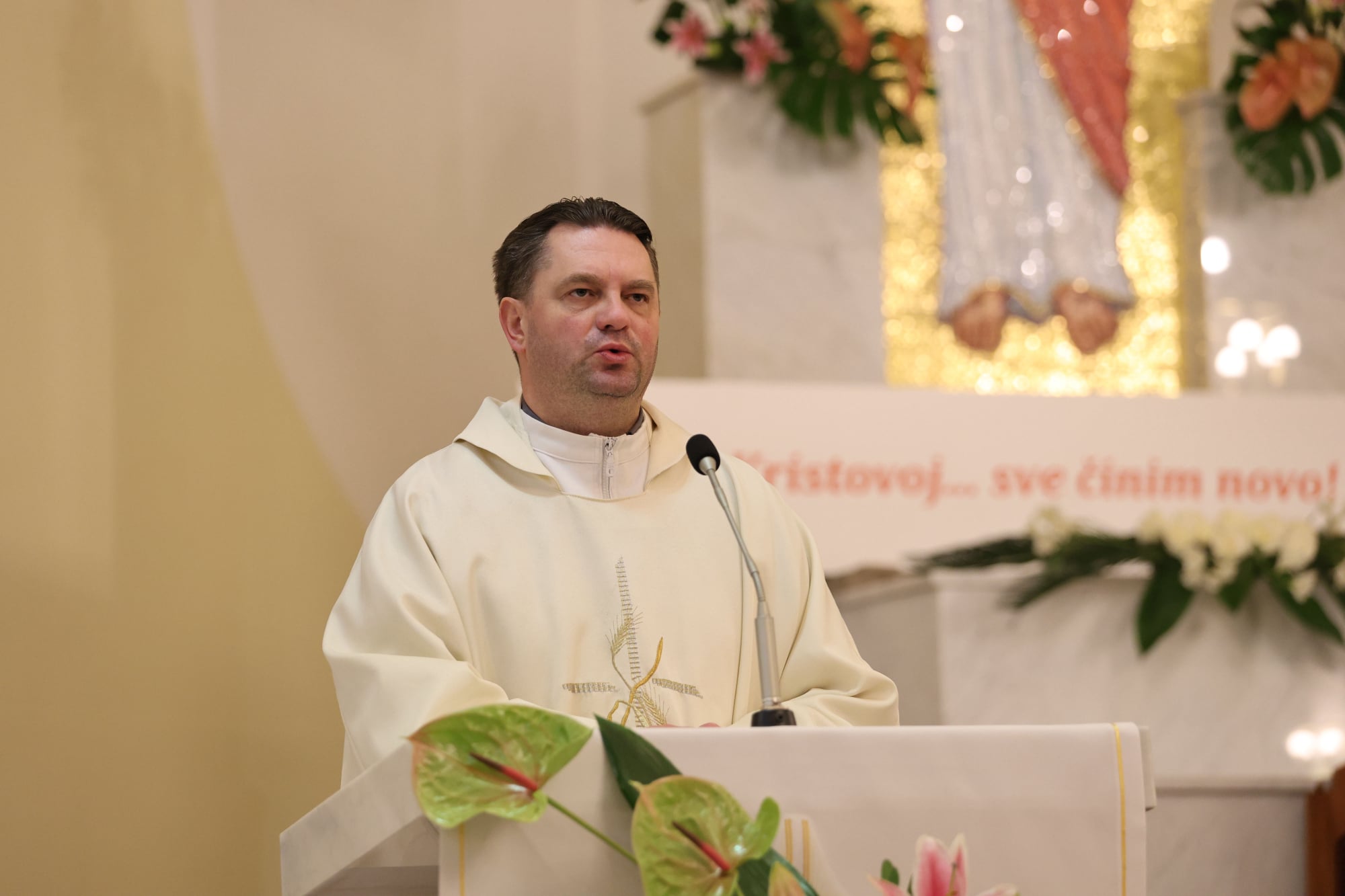 U svojoj propovijedi vlč. Ivan progovorio je upravo o ljepoti i zahtjevnosti posvećenog života, povezujući ga s likom Marije De Mattias i njezinim osnivanjem družbe sestara Klanjateljica Krvi Kristove. Istaknuo je kako je njezin život bio obilježen prihvaćanjem žrtve, ali ne kao tereta, nego kao izraza ljubavi prema bližnjem. Ljubav koja ne poznaje žrtvu ostaje prazna, a žrtva bez ljubavi gubi smisao. Isto tako, naglašeno je da svetost bez žrtve nema dubinu, jer se upravo u darivanju sebe drugima rađa istinska svetost.