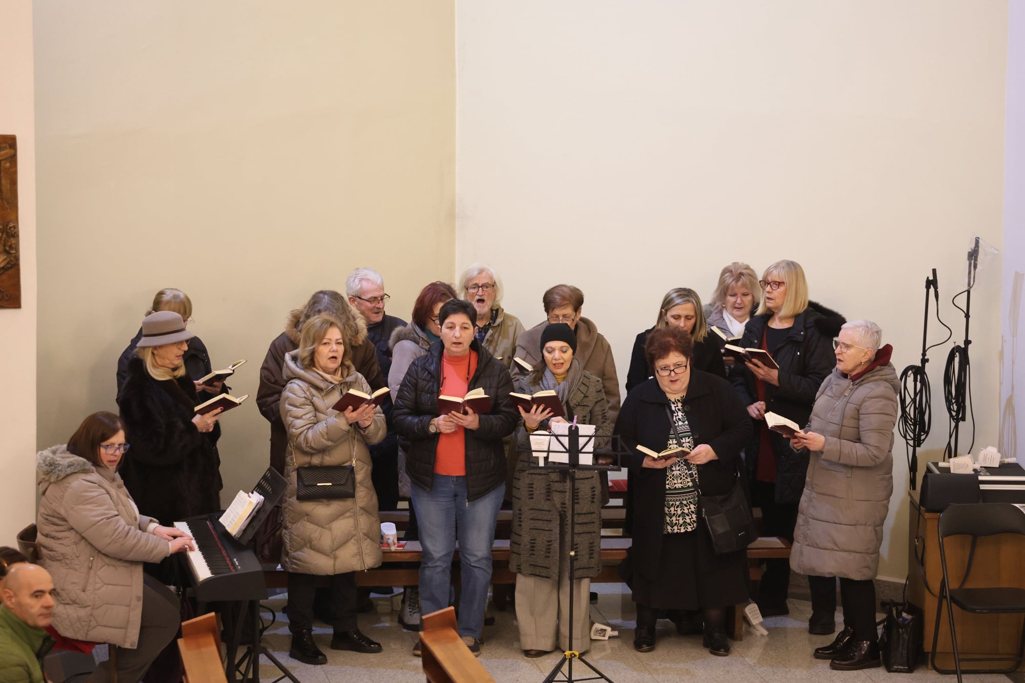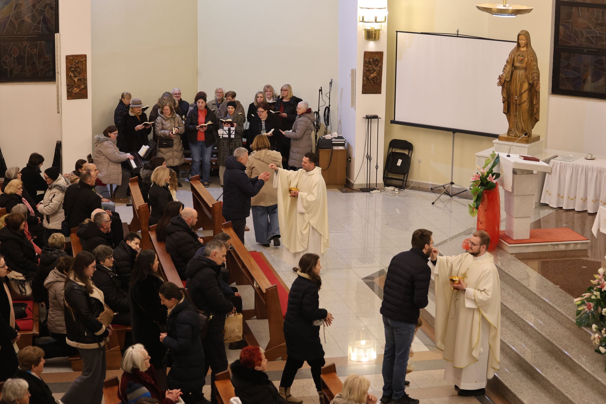 Svetu misu dodatno je uzveličao liturgijskim pjevanjem naš zbor „Cor Jesu“, koji svojim skladnim glasovima i molitvenim pjesmama doprinosi dostojanstvu euharistijskog slavlja. Zbor uvježbava, a povremeno i klavijaturom prati prof. Zvonka Čurjak, kojemu također zahvaljujemo na njegovoj predanosti i glazbenom doprinosu liturgiji.